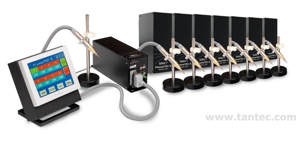 Niederdruckplasma von Tantec für die Oberflächenvorbehandlung von Kunststoffen und Metallen. Mit noch kompakteren Abmessungen löst das neue Plasmasystem fast jedes Adhäsionsproblem. Luftstrom und Entladung an den Plasmadüsen werden automatisch geregelt. An eine PlasmaREMOTE Steuereinheit können bis zu acht Köpfe angeschlossen und individuell kontrolliert werden. Dank Plug & Play Technik ist selbst eine nachträgliche Erweiterung sehr einfach realisierbar. Verschiedene Längen der Versorgungskabel zu den Plasmadüsen werden vom Gerät automatisch abgeglichen.