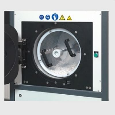 Das Schüttgut oder Pulver befindet sich in einem zylindrischen Behälter, welcher sich in der Vakuumkammer während der Behandlung dreht. Je nach Substrat kann die Ausführung und das Volumen angepasst werden.